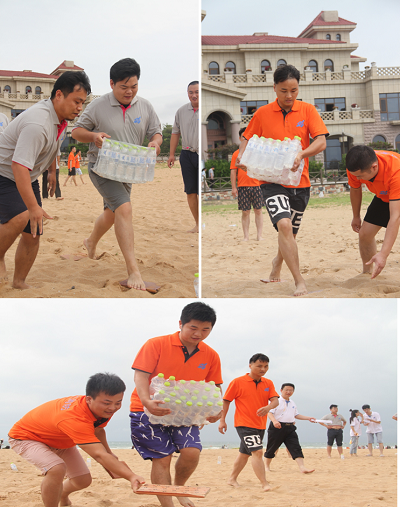 摸石頭過河,需要兩名隊員協作配合,一人抱重物,另一人將隊友腳下的木板依次往前方更替,直至到達終點,最終用時少的一方獲勝。團隊的前進離不開每一個銷售人員的參與,角色可能稍微不同,你跑新市場我守老客戶,你負重前行時,我就為你鋪路,我們是一個團隊,配合默契,共同做好市場。一組全力以赴之后,下一組接力,繼續前進,肩上的責任永不放下,腳下的路程越來越短,離目標、離成功越來越近。