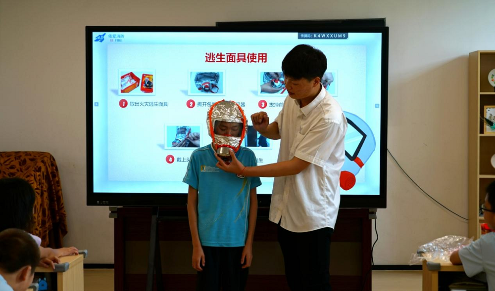 隨后,依愛消防的志愿者彭啟晗為孩子們帶來了一場生動、活潑的消防安全知識講座,從教小朋友認識消防器材、消防標識到如何使用消防設(shè)備、預防火災、逃生等,淺顯易懂的語言讓孩子們很快就能夠掌握這些應知應會的消防安全知識,邊學邊互動的有獎回答讓小朋友們踴躍發(fā)言,課堂氣氛非常活躍。在防煙防毒面具、防火毯和滅火器的演示、使用動手環(huán)節(jié)上,孩子們爭先恐后、躍躍欲試。有些小朋友因為身體殘疾的原因雖然不能夠去動手實踐,但在講課環(huán)節(jié)時非常認真地聽講,對于不懂的問題還積極提問,志愿者老師也耐心的講解。一個多小時的課程和互動很快就過去了,孩子們依依不舍,禮貌的道別。