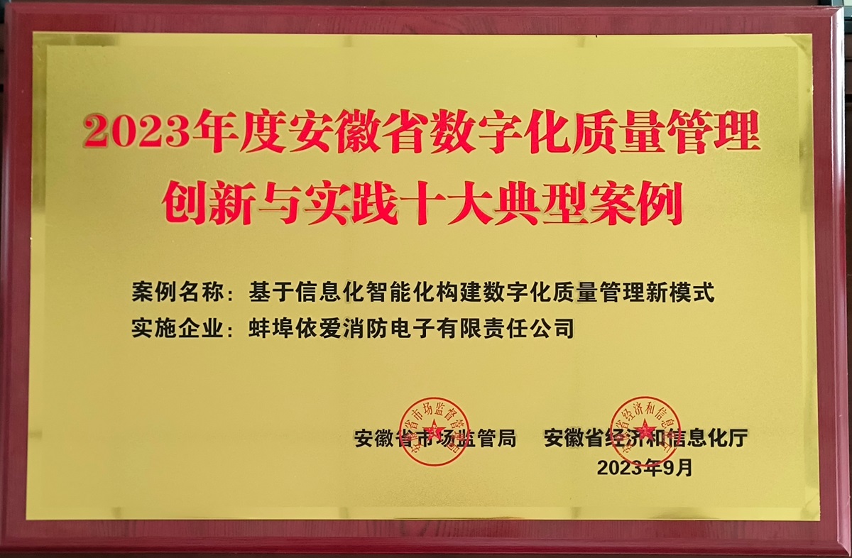 依愛消防“基于信息化智能化構建數字化質量管理新模式”成功入選,榮獲表彰。